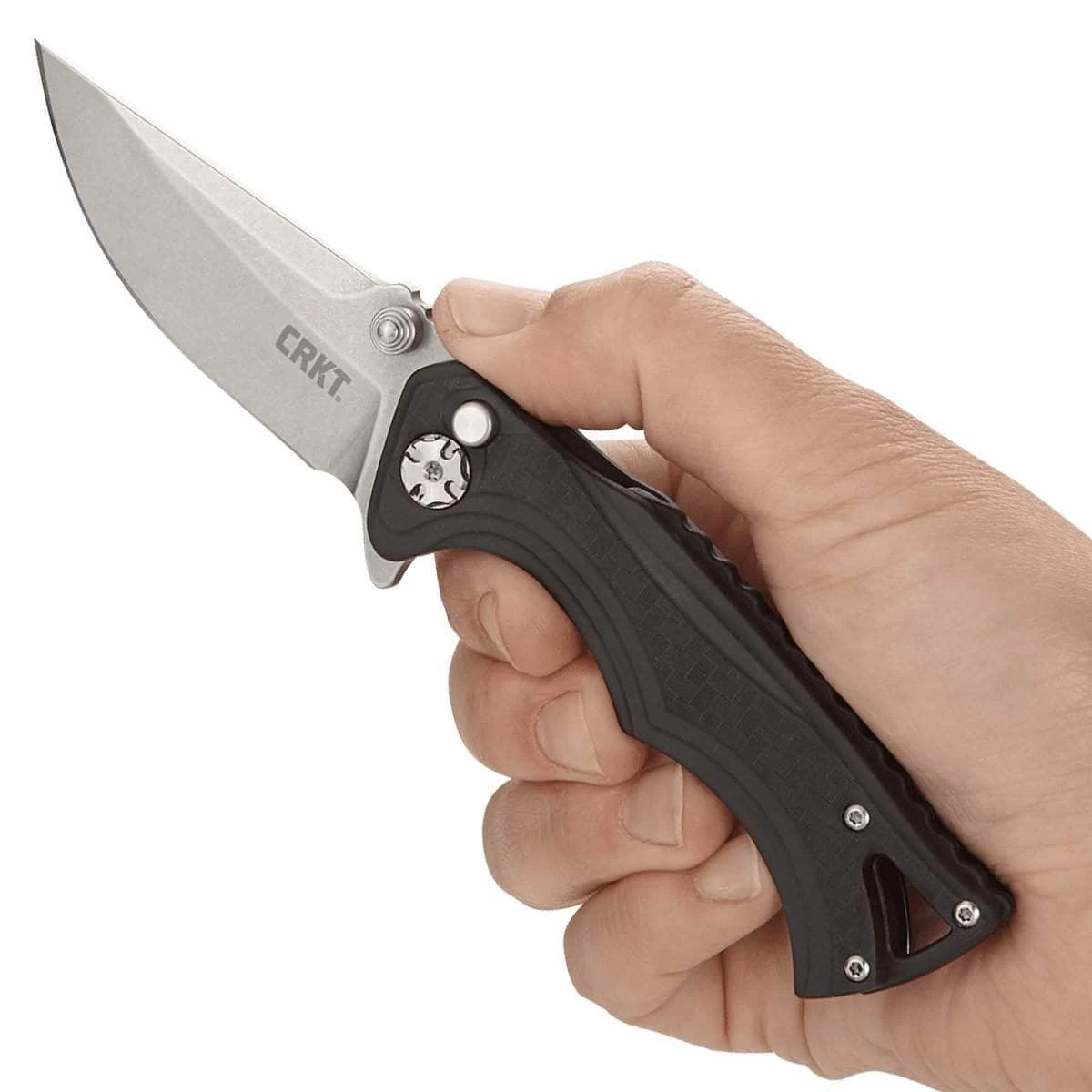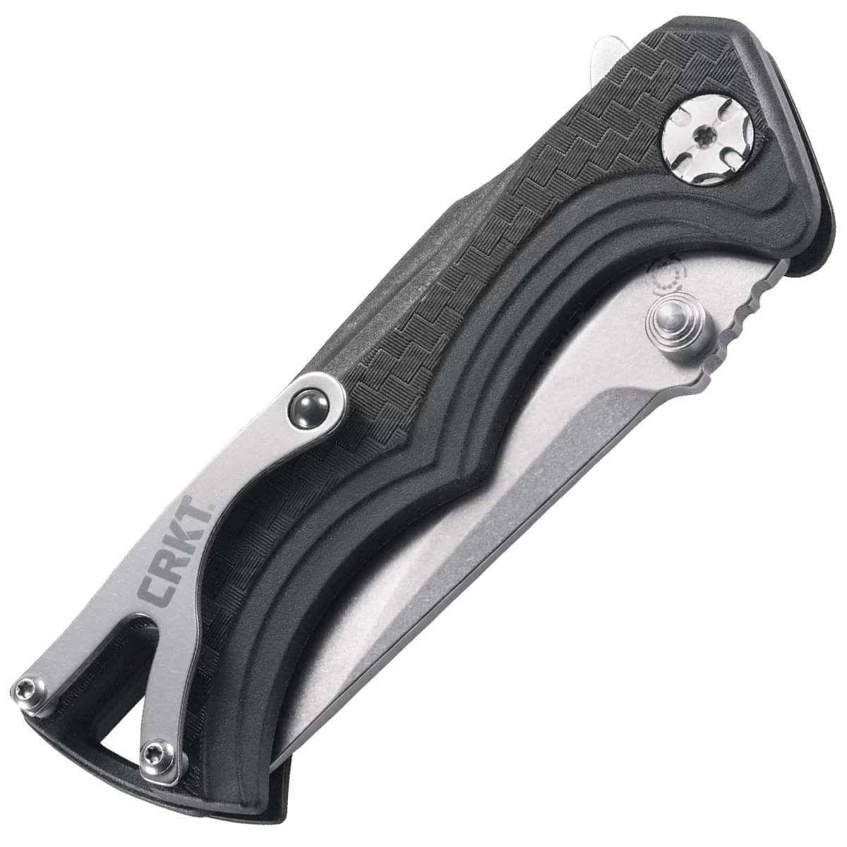 Modeled closely after his Tighe Fighter custom design, the BT Fighter comes from Brian Tighe’s shop in Ridgeville, Ontario replete with all the signature Tighe design details. The, stonewashed stainless steel drop point blade is balanced with a swedge making for a strong, reinforced tip. The handle is equally as eye catching with a layered look carved of one sturdy slab of glass-reinforced nylon. The backspacer and deep grooves help you keep your grip. Deployed with a flipper, the blade opens smoothly and quickly thanks to the ball bearing pivot system. It’s held in place and disengaged with a easy-to-use button lock.