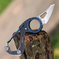 Columbia River CRKT Compano Carabiner Folding Knife (9083) – 1.44″ Satin Sheepsfoot Blade, Black Stainless Steel W/ Blue Accents Handle