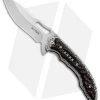 Automatic conversion of CRKT’s new Pharaoh manual folder. AUS8 modified drop point blade. Non-reflective bead-blast finish. A gold-plated Elishewitz logo is inset into the stainless steel blade (Allen Elishewitz is the knife’s designer). Teflon® and brass bearings at the blade pivot assure fast either-hand opening, using dual checkered thumb studs which also act as blade stops.