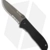- Gray-finished, serrated stainless steel spear point blade.