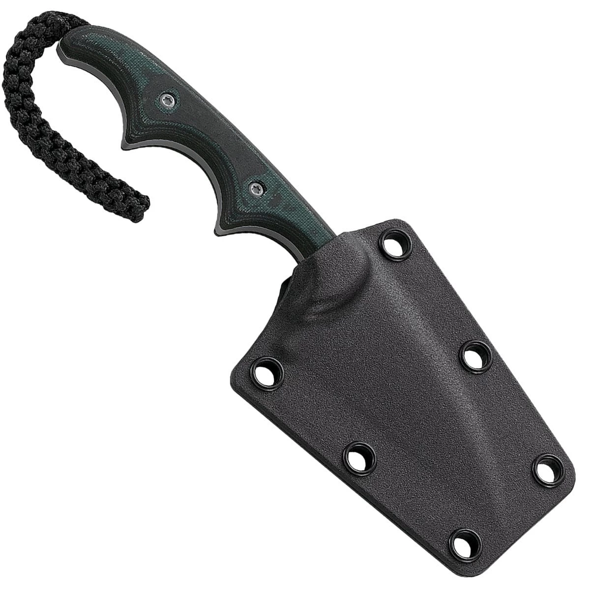 The polished resin impregnated fiber scales cover the full tang and boast three contoured finger choils. Jimping along the spine of the blade offers extra control.