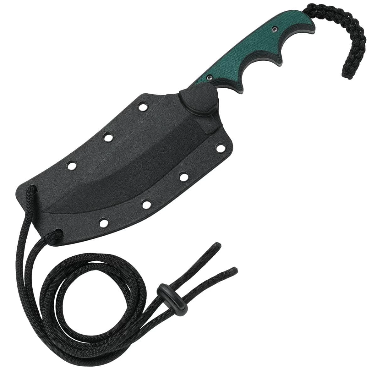 The polished resin-infused fiber handle is built with ergonomic choils for a secure grip. A versatile sheath is equipped to work as a neck knife, so you can slip it easily onto a belt, or attach to gear.